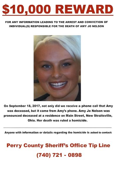 Anyone with information about the death of Amy Jo Nelson is urged to contact the Perry County Sheriff’s Office at 740-342-4123 or the Ohio Bureau of Criminal Investigation at 855-BCI-OHIO (224-6446).